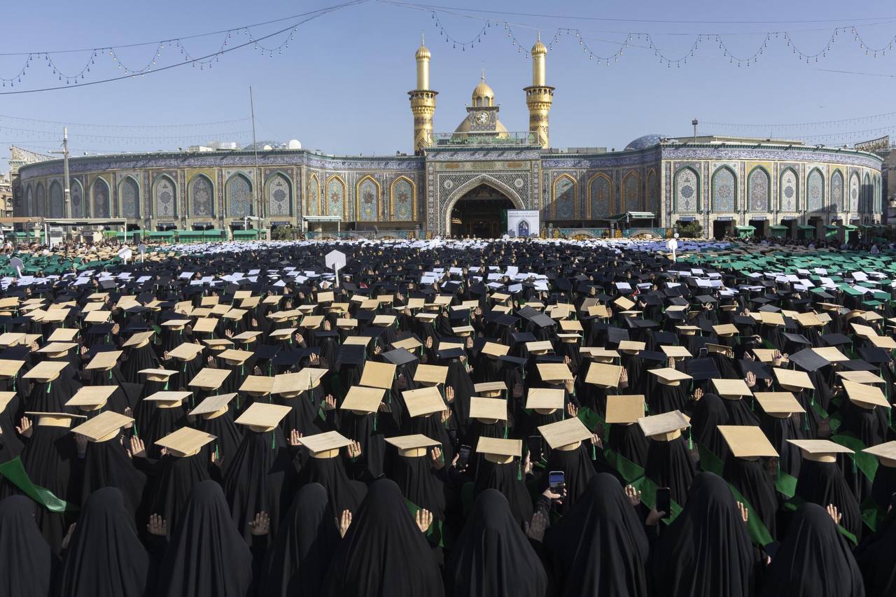 رددت 5 آلاف طالبة جامعية، قسم التخرج وعهد الولاء للوطن وخدمة أهله، أمام مرقد أبي الفضل العباس (عليه السلام)، ضمن فعاليات حفل تخرج طالبات الجامعات العراقية والدول الإسلامية دفعة (بنات الكفيل) التاسعة.