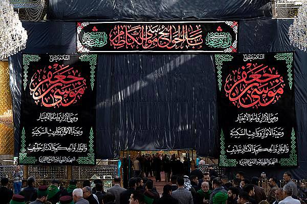 نشرت ملاكات العتبة العباسية المقدسة، لافتات الحزن بذكرى شهادة الإمام الكاظم (عليه السلام).