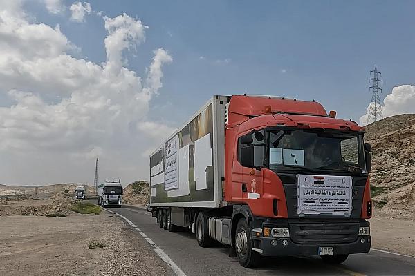 وتضم القافلة 38 شاحنة محمَّلة بـ690 طنًّا من المساعدات الإنسانية، تشمل 670 طنًّا من المواد الغذائية الأساسية، إلى جانب 20 طنًّا من المستلزمات الطبية الضرورية.
